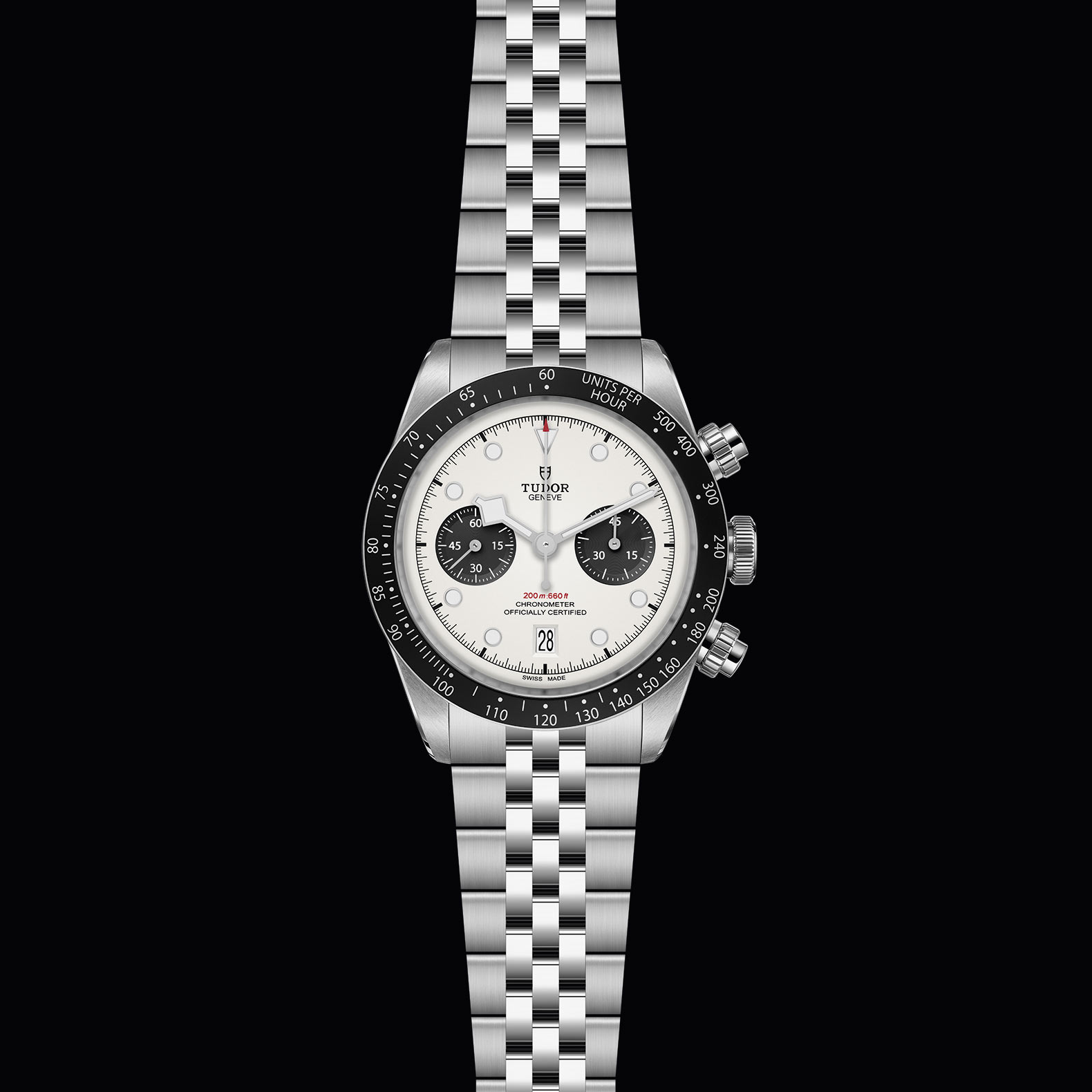 Per celebrare i 50 anni dei suoi cronografi, TUDOR lanciava il modello Black Bay Chrono in acciaio con una cassa rielaborata e due opzioni di quadrante con contatori a contrasto, nella più pura tradizione dei cronografi sportivi. Da oggi, il modello offre anche la possibilità di scegliere tra due opzioni di bracciale, a tre maglie o a cinque maglie, entrambe con chiusura TUDOR “T‑fit”.