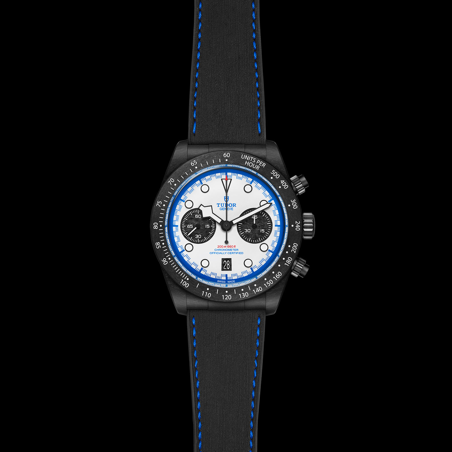 Corona di carica: Corona di carica a vite con finitura PVD e rosa TUDOR in rilievo. Pulsanti a vite in titanio con finitura PVD a ore 2 e 4