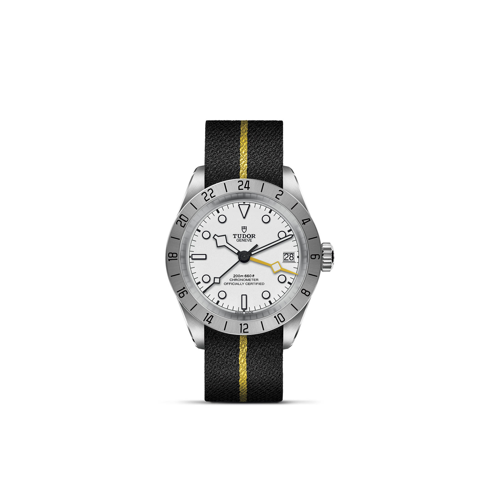 Il Black Bay Pro è dotato di doppio fuso orario, una complicazione tecnica che permette di visualizzare l’ora locale senza perdere di vista l’ora di un altro fuso orario. Compatto, robusto e sportivo, questo modello presenta numerosi dettagli estetici unici e celebra lo spirito degli orologi tecnici che TUDOR ha prodotto per i professionisti nel corso della sua storia. Riconoscibile grazie alla lunetta fissa satinata graduata 24 ore e alla lancetta “Snowflake” 24 ore di colore giallo, il Black Bay Pro è animato dal Calibro di Manifattura TUDOR MT5652 con funzione GMT integrata. Quest’anno viene introdotto un quadrante opalino all’interno della gamma.